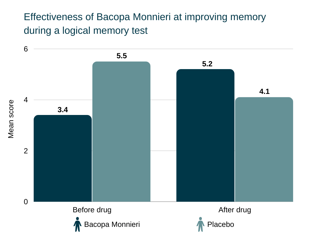 It’s possible that our ancestors knew what they were talking about, as researchers observed significant improvements in memory for patients with Alzheimer’s disease. However, other studies report a smaller improvement or no improvement at all, so it’s difficult to say how effective Bacopa monnieri is [8].